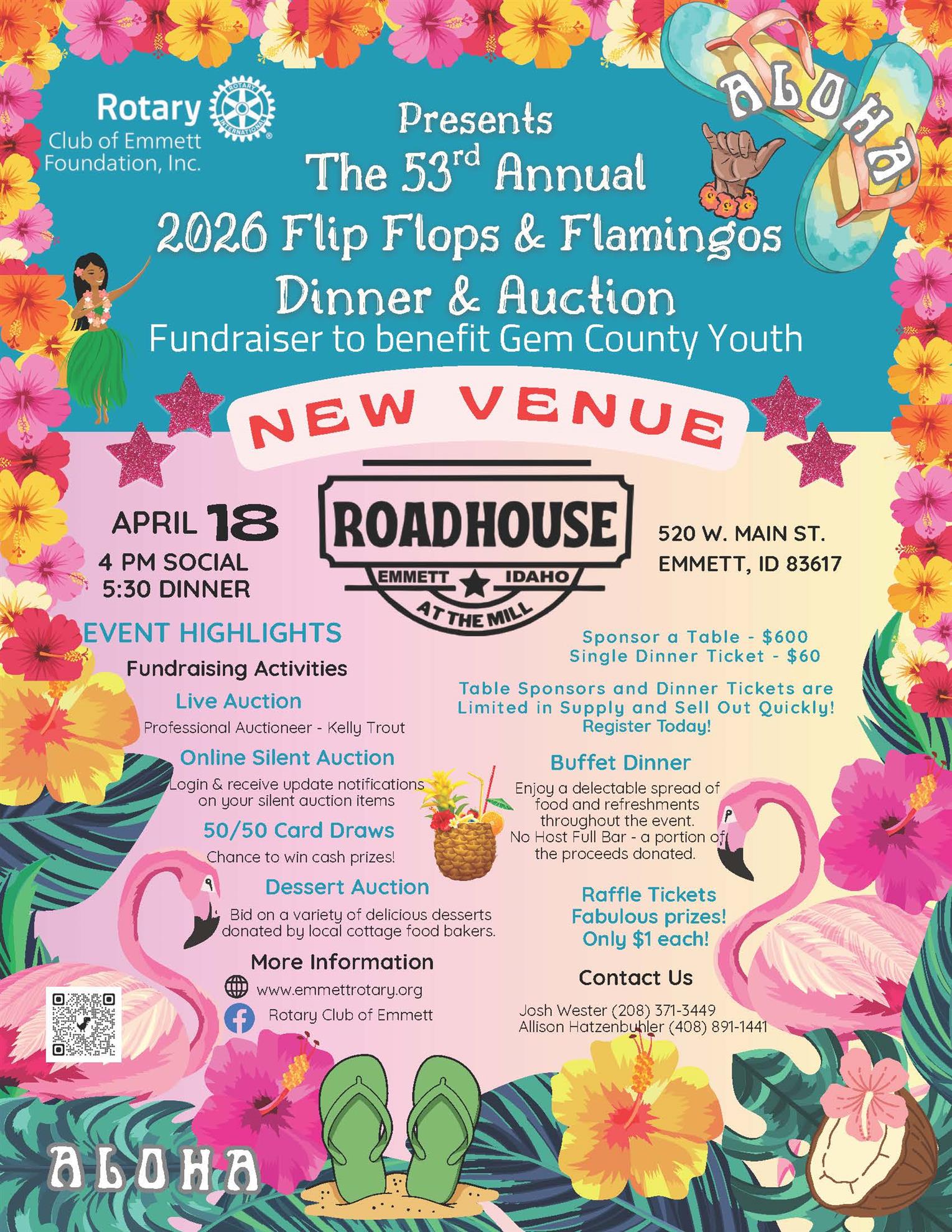 Organized by the Rotarians in Emmett, the Flip Flops & Flamingos Youth Benefit Dinner and Auction is a beloved tradition that showcases community support. This large-scale event involves every Emmett Rotarian, who dedicates countless hours and several months in preparation to ensure its success in raising funds for the youth of Gem County.